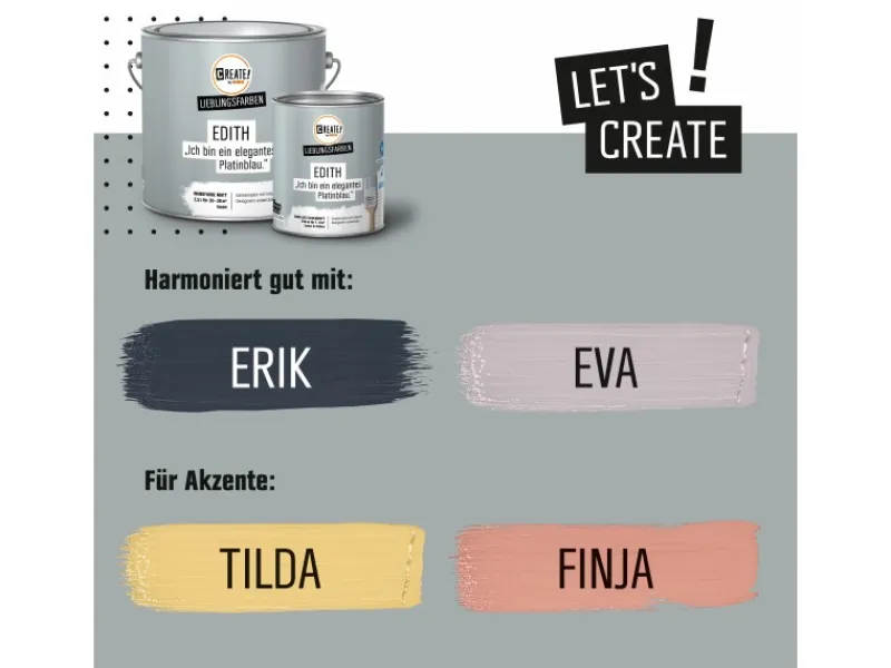 Damit unsere Lieblingsfarben ihrem einzigartigen Charakter lange treu bleiben, enthalten sie starke Farbpigmente. Sie zeigen dir beim ersten Anstrich, was in ihnen steckt und warten mit einer guten Deckkraft auf. Dadurch sind alle CREATE! Trendfarben nicht nur stylisch, sondern auch hochwertig.