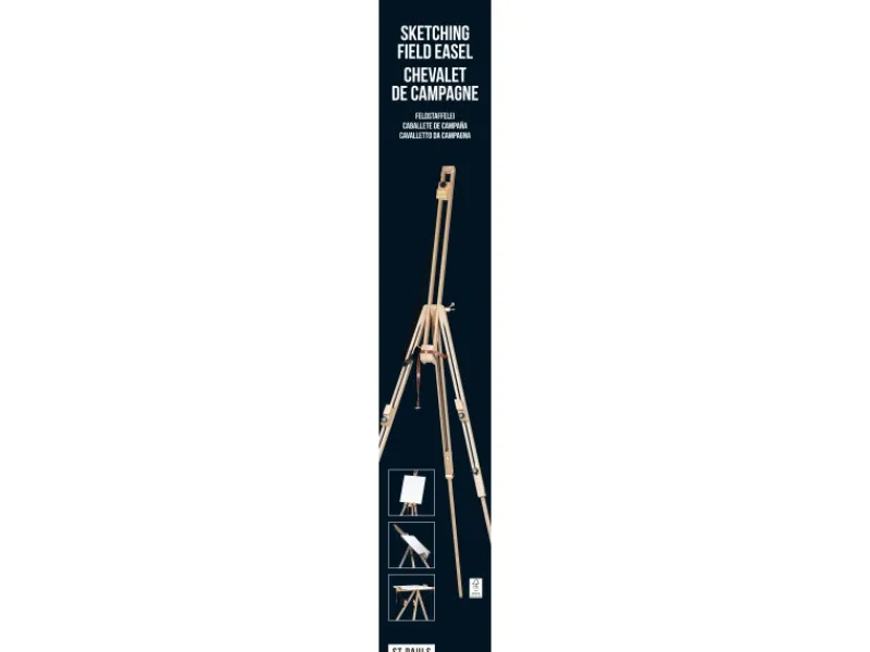Die Tischstaffelei mit geöltem, hölzernem Rahmen ist leicht zu verstauen, da sie sich flach zusammenklappen lässt. Sie ist vollständig nach hinten verstellbar und passt sich den Arbeitsvorlieben an.