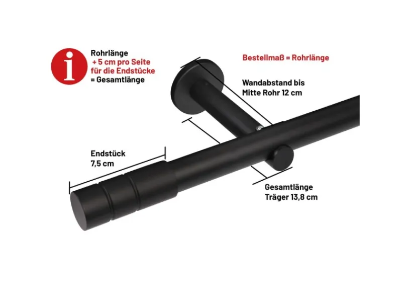 1-läufige Gardinenstange nach Maß Zylinder Schwarz – 440 cm