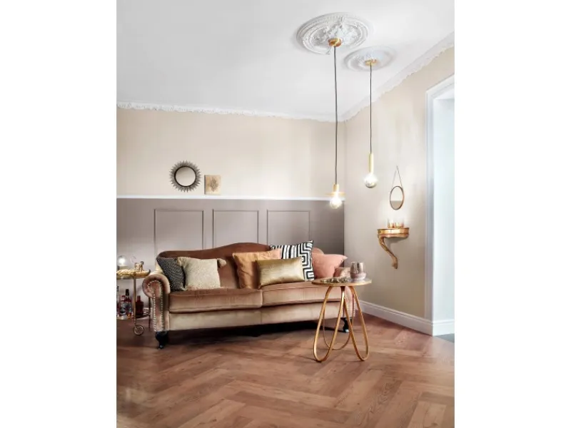 Das Zierprofil Giuseppina ist ein klassisches und zeitloses Dekorelement, welches echtem Stuck täuschend ähnlich sieht. Ob Altbauflair oder trendiges Loftfeeling – das Zierprofil Giuseppina ist in jedem Fall ein echter Hingucker. Mit Hilfe der Gehrungslade und einer Feinsäge das Zierprofil Giuseppina ganz einfach auf die gewünschte Länge schneiden. Für die gewünschte Farbgestaltung einfach lösemittelfreie Dispersionsfarbe verwenden und schon ist der Kreativität keine Grenzen gesetzt.