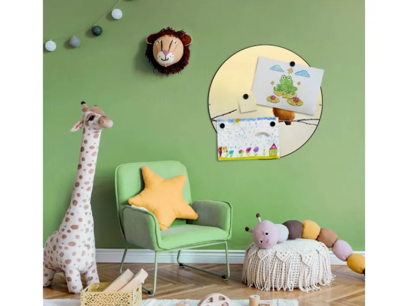 Das banjado Design Vision Board bringt Ordnung in Ihr Zettelchaos. Fotos, Notizen oder Rezepte lassen Sich stilvoll mit den beigefügten Magneten auf der runden Magnettafel. ordnen.