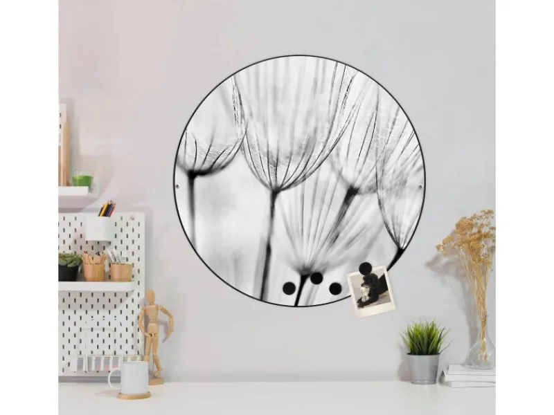 Das banjado Design Vision Board bringt Ordnung in Ihr Zettelchaos. Fotos, Notizen oder Rezepte lassen Sich stilvoll mit den beigefügten Magneten auf der runden Magnettafel. ordnen.