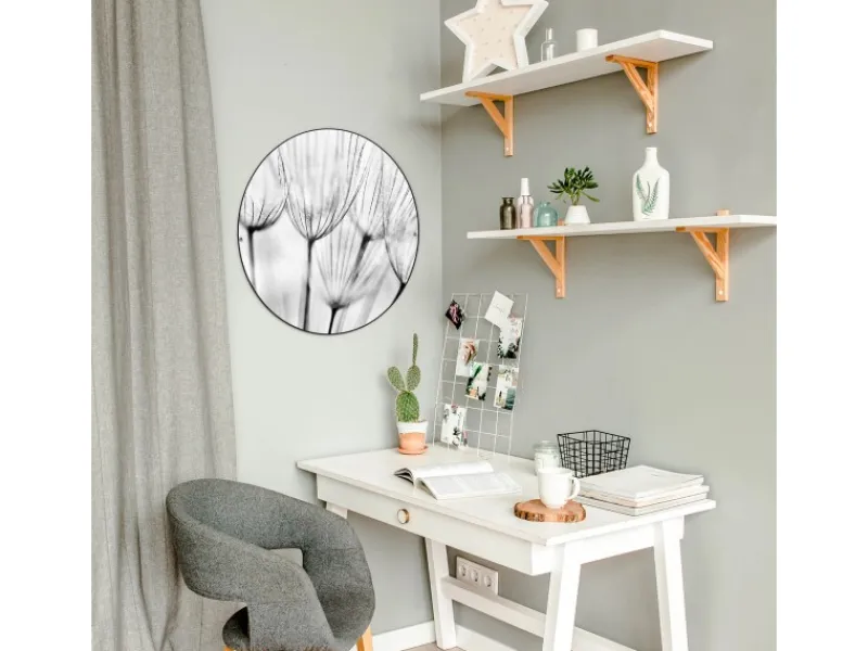 Das Motiv Pusteblumen SW wird mit einem Schutzlaminat überzogen und ist lösungsmittelfrei.