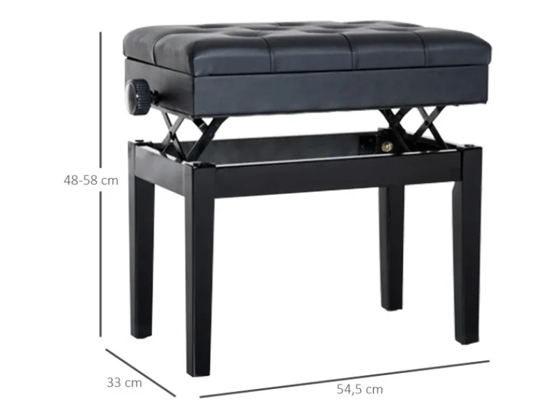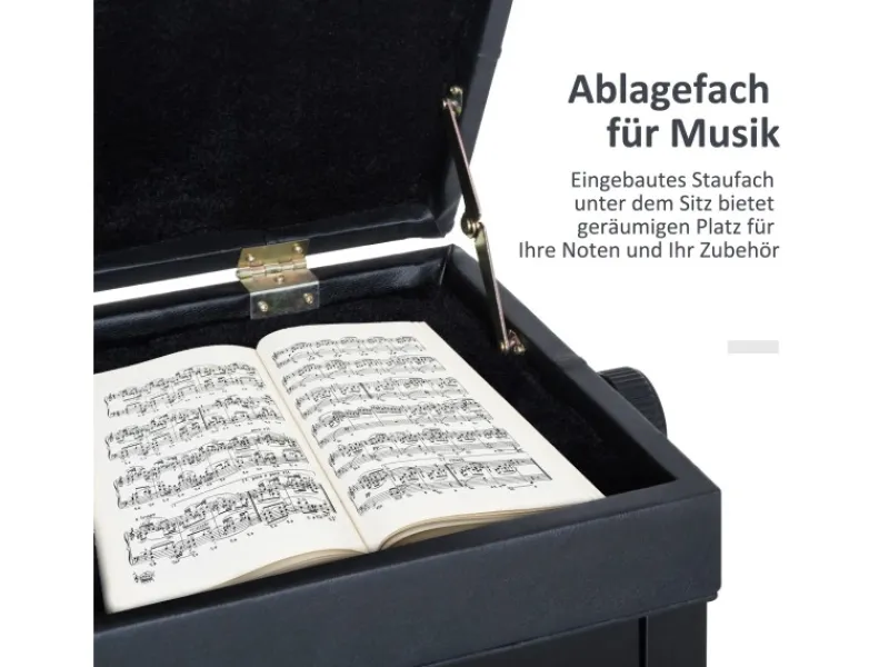 Ob Sie Student, Lehrer, Profi oder Gelegenheitsspieler sind, diese verstellbare Klavierbank von HOMCOM ist perfekt für Sie! Steigern Sie Ihre Leistung, indem Sie auf der bequemen, mit Kunstleder bezogenen Schaumstoffoberfläche in der von Ihnen gewünschten Höhe sitzen. Diese stabile Bank passt zu jeder Einrichtung verleihen Sie Ihrer Einrichtung einen Hauch von Klasse und bewahren Sie gleichzeitig Ihr gesamtes Klavierzubehör auf.