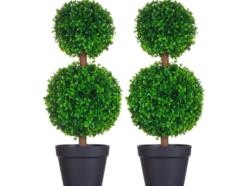 Verdoppeln Sie die natürliche Schönheit in Ihrem Zuhause – ganz ohne Pflegeaufwand. Diese beiden beeindruckenden künstlichen Buchsbäume von HOMCOM sind aus langlebigem Kunststoff gefertigt und bestechen durch ihre realistischen Farben und Texturen, die sie wie echte Pflanzen aussehen lassen. Die künstlichen Pflanzen bedeuten null Aufwand in der Pflege – sie behalten ihr makelloses Aussehen, auch ohne Bewässerung. Dank der Zementfüllung im Topf stehen sie stabil und aufrecht.