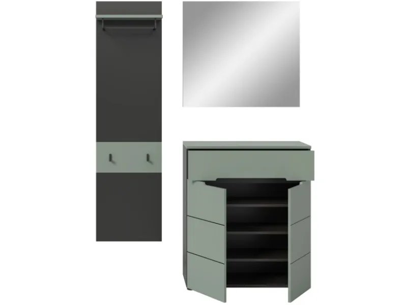 Garderobe „Cooper“ von Inn.Furn, 3-teilig, Salbei Grün / Basalt Grau