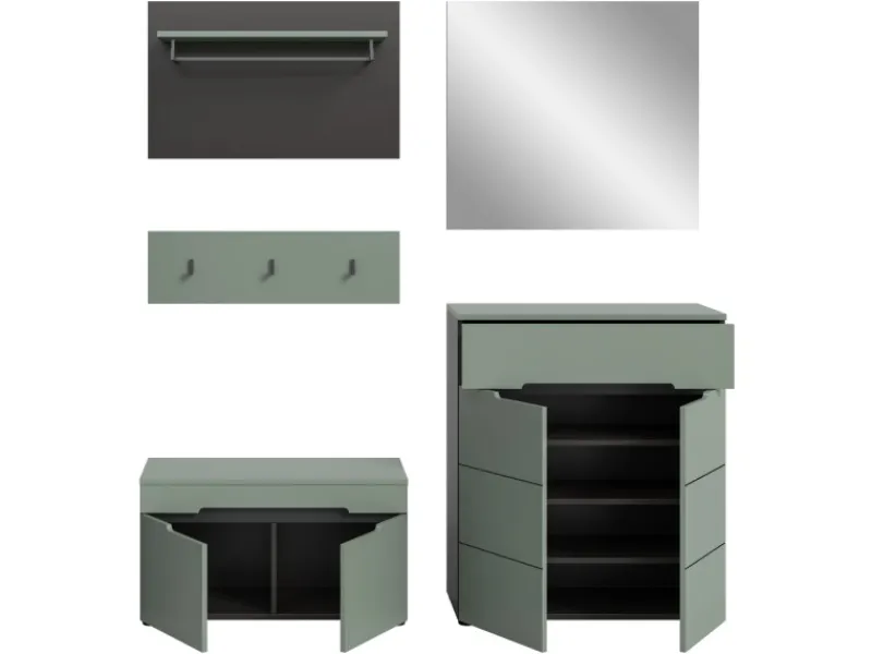 Garderobe „Cooper“ von Inn.Furn, 5-teilig, modernes Salbei Grün / Basalt Grau Design
