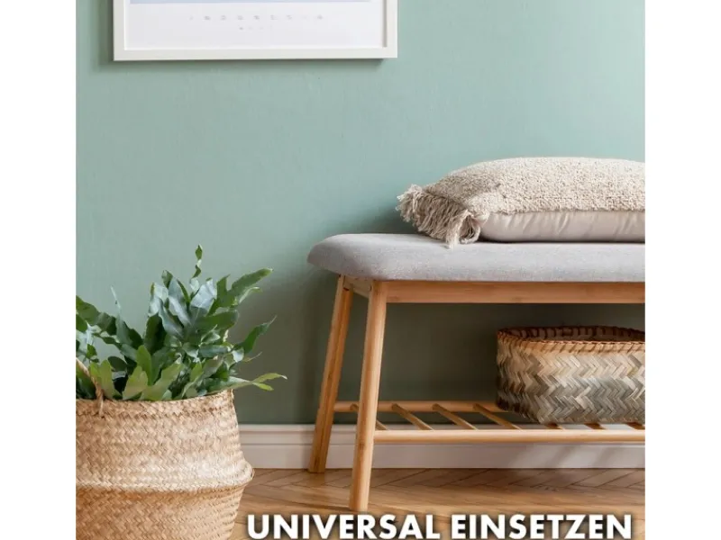 Die Bambus-Sitzbank „Montana“ vereint Funktionalität und Stil in einem platzsparenden Design. Mit ihren kompakten Maßen von 34 cm Tiefe, 90 cm Breite und 45 cm Höhe passt sie perfekt in enge Räume und hilft Ihnen, den Stauraum optimal zu nutzen, um Ihren Eingangsbereich oder Flur ordentlich und übersichtlich zu halten.
