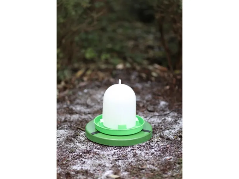 Die Heizplatte ist für Geflügeltränken. Sie ist in der Farbe Grün gehalten und rund. Sie eigent sich bspw. für Hühner-Geflügeltränken.