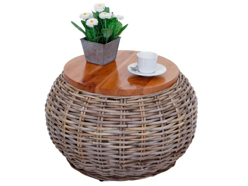 Entdecken Sie den Beistelltisch M30 – mehr als nur ein einfacher Tisch. Dieser exquisite Rundtisch ist das perfekte Zusammenspiel von Natur und Design. Angefertigt aus echtem Kubu Rattan, zeugt er nicht nur von Qualität und Langlebigkeit, sondern besticht auch durch sein authentisches Geflecht in natürlicher Färbung. Sein einzigartiger Charakter wird durch die Tischplatte aus edlem Mahagoniholz hervorgehoben. Dieses noble Holz verleiht dem Tisch eine warme, einladende Note und macht ihn zum stilvollen Mittelpunkt in jedem Raum.