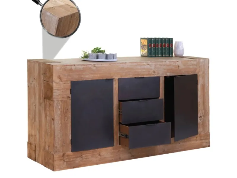 Dieses vielfältig einsetzbare Sideboard sieht nicht nur gut aus, es bietet auch reichlich Unterbringungsmöglichkeiten. Mit zwei großen Staufächern wird Ordnung zum Kinderspiel. Zusätzlich befinden sich in der Mitte noch drei geräumige Schubladen, in denen Sie einiges verstauen können. Durch das schnörkellose Design fügt sich die Kommode in fast jedes Ambiente ein und lässt sich sehr gut mit den weiteren Möbeln aus dieser Serie kombinieren.