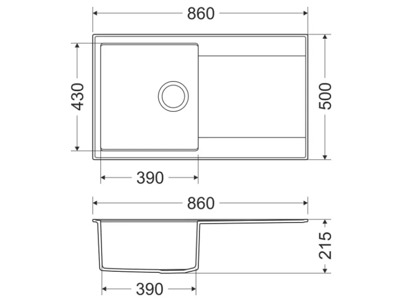 86 cm x 50 cm x 21,5 cm (H x B x T)