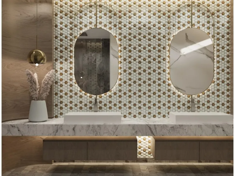 Glas-Mosaikfliese in Hexagonal-Optik für die Wandgestaltung im gesamten Wohnbereich