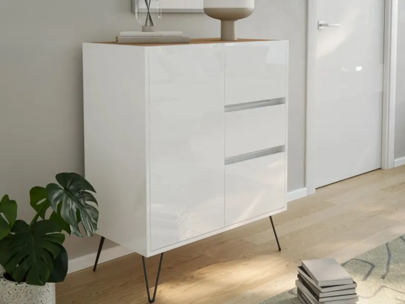 Im Lieferumfang enthalten sind die Füße auf die das Sideboard gestellt wird. Diese sind 20 cm hoch.