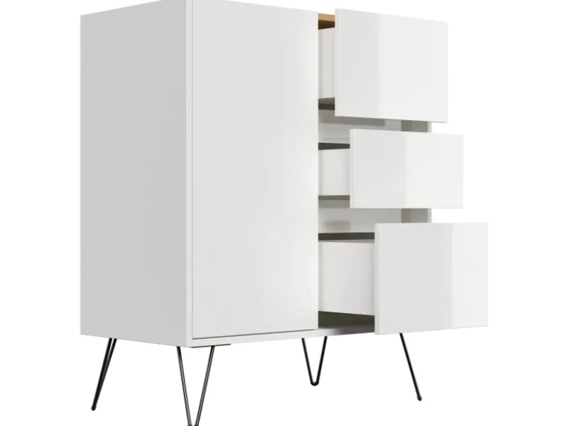 Maße und Lieferumfang: Kommode Industrial K 80 cm mit 3 SoftClose Schubladen und einer Tür (B x H x T): 79 cm x 93,6 cm x 42 cm