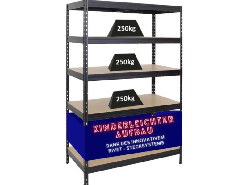 Hohe Traglast von 250 kg pro Ebene bzw. Gesamttraglast von 1250kg für die 5 Ebenen