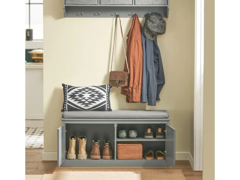 Dank des Sitzkissens können Sie sich Ihre Schuhe bequem an- und ausziehen.