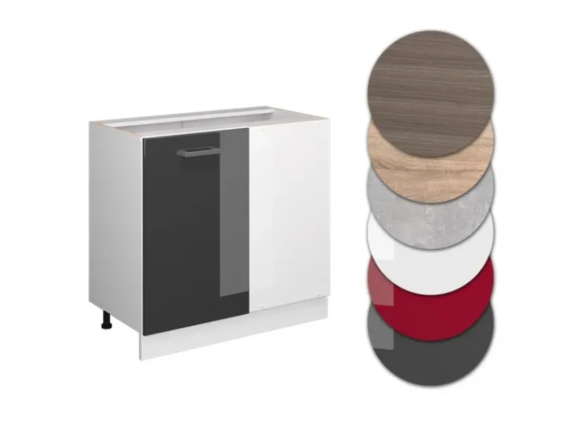 Discount Vicco Eckunterschrank R-Line Hochglanz/Weiß 86 cm ohne Arbeitsplatte Anthrazit