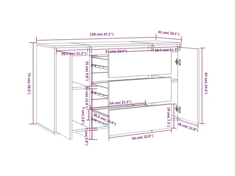 Abmessungen: 120 x 41 x 75 cm (L x B x H)
