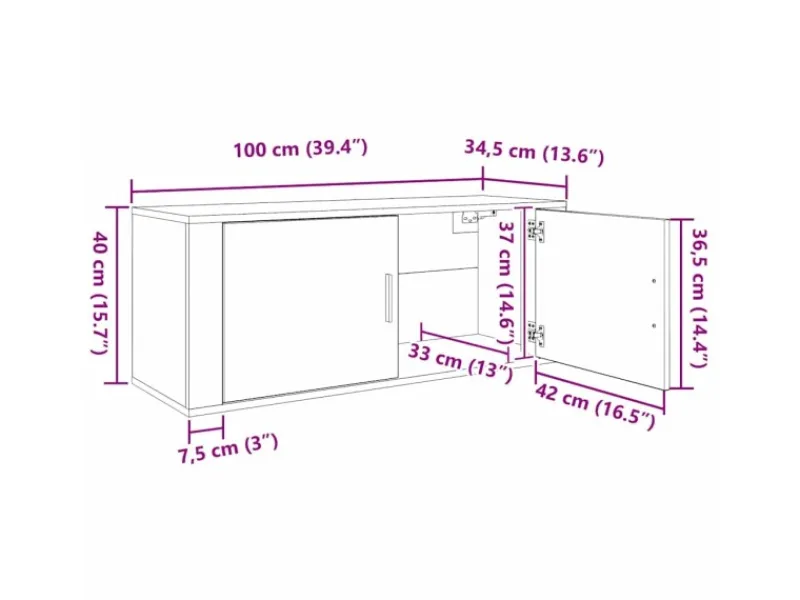 Gesamtabmessungen: 100 x 34,5 x 40 cm (L x B x H)