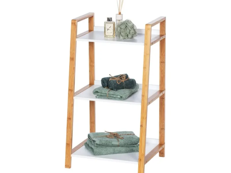 Alle Einrichtungsgegenstände sind aus hochwertigem Bambus gefertigt, welcher robust und widerstandsfähig ist. Die MDF-Ablagen sind im schlichten Weiß gehalten.