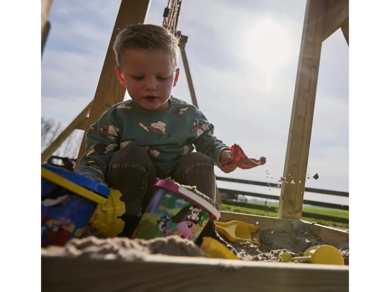 Tipp: Belüften und harken Sie den Sandkasten regelmäßig, um Schimmel- oder Pilzbildung zu vermeiden. Achten Sie zudem darauf, dass Feuchtigkeit entweichen kann.