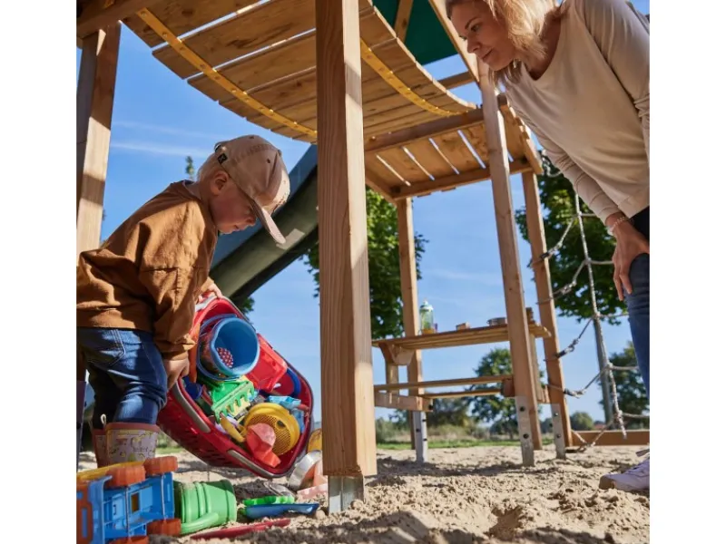 KOMPATIBILITÄT: Viele unserer Sandkästen können mit anderen Spielgeräten wie Schaukeln kombiniert werden, um noch mehr Spielspaß zu bieten.