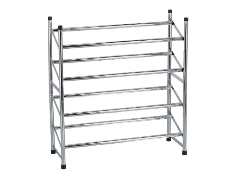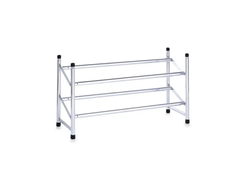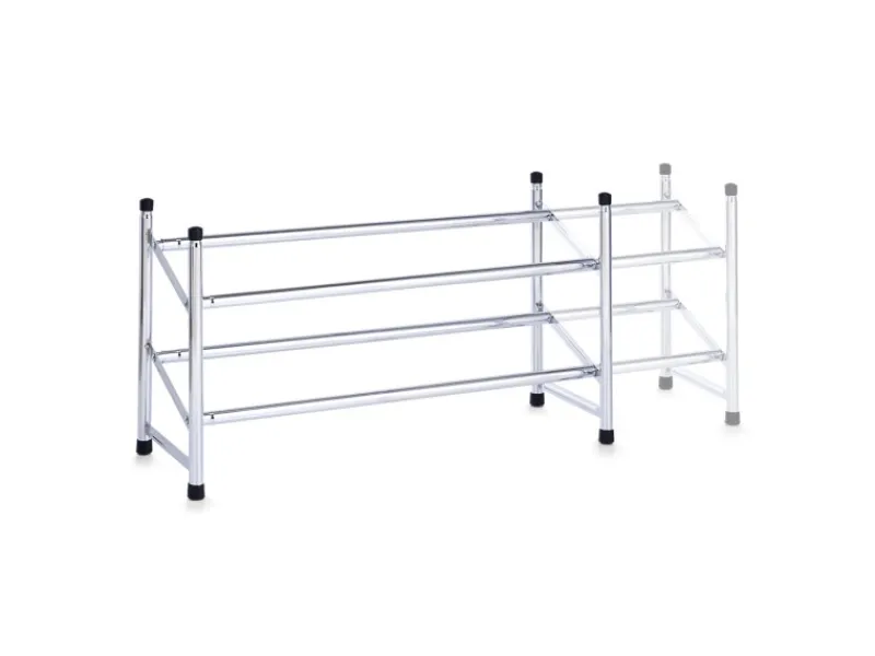 Das Zeller Schuhregal mit 2 Ablagen wurde aus hochwertig verchromtem Metall hergestellt und passt sich Ihren individuellen Bedürfnissen perfekt an. Es ist auszieh- und stapelbar und dank der schnellen und einfachen Selbstmontage jederzeit sofort einsetzbar. Mit Hilfe des funktionalen Schuhregals finden Ihre Schuhe in Ihrem Haushalt ihren festen Platz und sind stets ordentlich verstaut. Das Schuhregal bietet auf den 2 Ablagen Platz für bis zu acht Paar Schuhe.