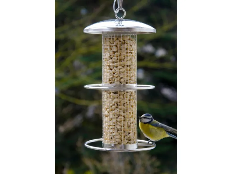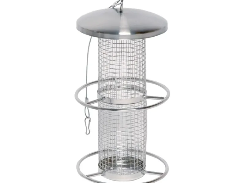 Der robuste Futterspender besteht vollständig aus Metall und ist absolut wetterbeständig