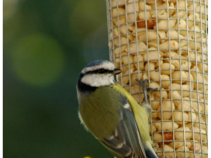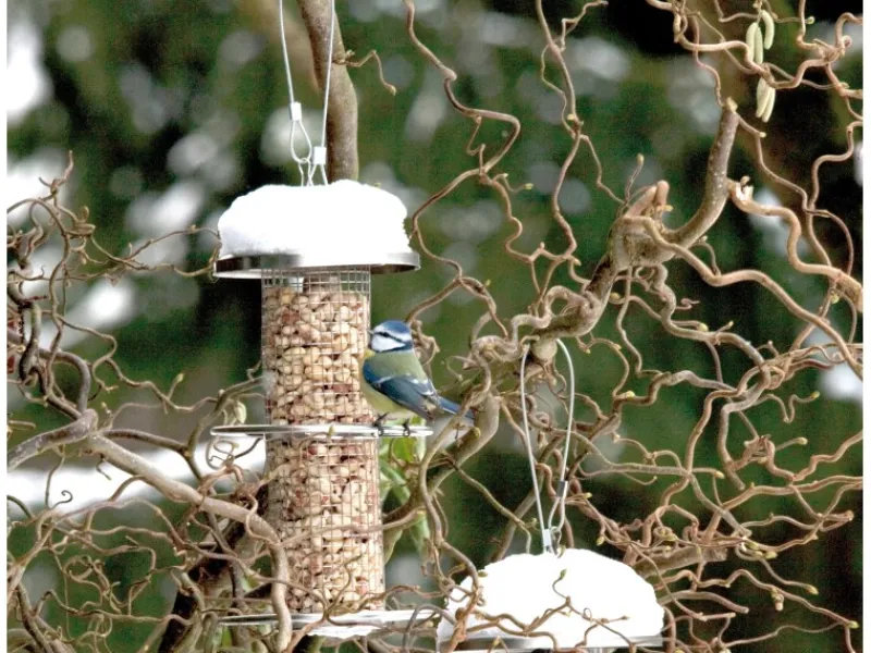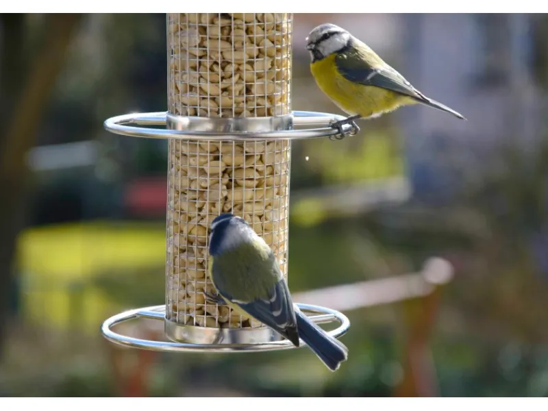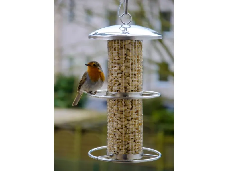 Die Futterstation mit Gitterröhre eignet sich hervorragend für die Fütterung mit Nüssen & Kernen