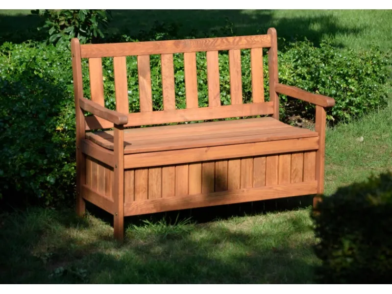 Die Dobar Gartenbank zeichnet sich durch den großzügigen Stauraum unterhalb der Sitzfläche aus. An das integrierte Staufach gelangen Sie ganz bequem, indem Sie die Sitzfläche mittels zwei Metallscharnieren nach oben klappen. Hier können Sie Sitzauflagen, Gartenspielzeug, Gartenwerkzeug und weitere Gartenutensilien verstauen und haben diese schnell zur Hand.