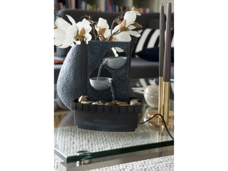 Gefertigt aus hochwertigem Polyresin (Kunststein), besticht er durch seine Langlebigkeit und einfache Pflege. Die laufruhige und zuverlässige Pumpe sorgt für einen kontinuierlichen und beruhigenden Wasserfluss, der eine entspannende Atmosphäre schafft.