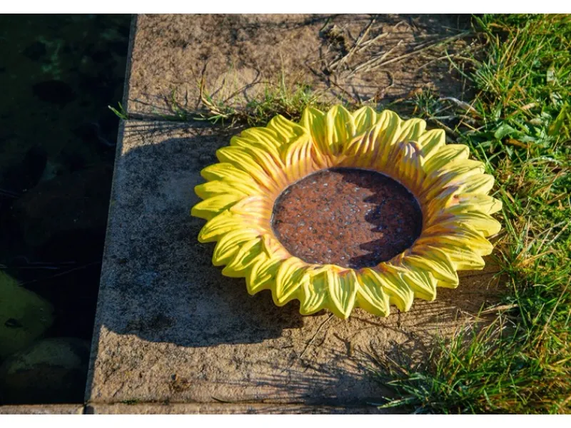 Insekten benötigen das Wasser vor allem zum Bau ihrer Nester. Ein regelmäßiger Austausch des Wassers sowie die Reinigung der Schale sind zu empfehlen, um Krankheiten vorzubeugen. Auch wenn keine durstigen Gäste in Sicht sind, ist die Insektentränke ein schöner Anblick. So macht das bunte Äußere in Form der Blüte einer Sonnenblume die Wasserstelle zu einem dekorativen Gestaltungselement für den Garten.