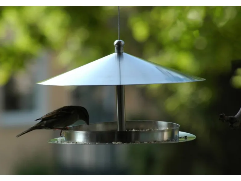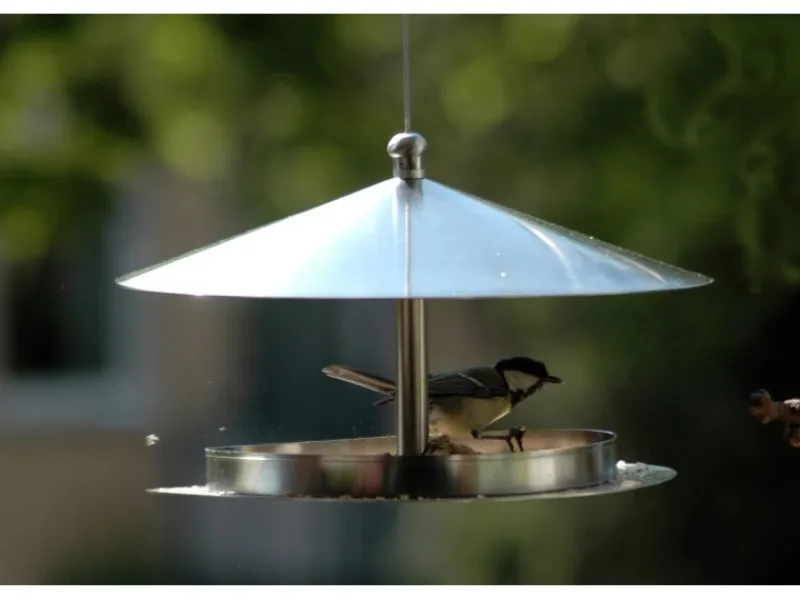 Die runde Design-Futterstation mit geschwungenen Formen ist aus Edelstahl gefertigt und eignet sich für heimische Wildvögel. Ein extra großer Dachüberstand schützt das Vogelfutter vor Regen und Nässe. Als Bausatz ist der Artikel ganz einfach und schnell ohne Werkzeug zu montieren. Mit edlem Metalldraht zum Aufhängen.