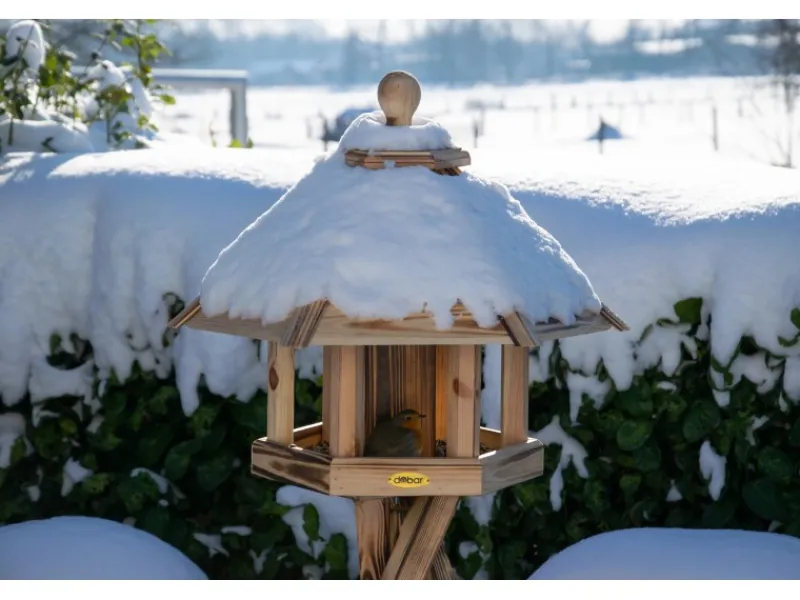 Die Futterstation besteht aus FSC-zertifiziertem Kiefernholz aus europäischer Forstwirtschaft