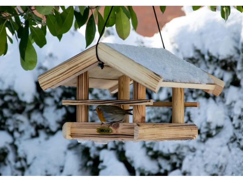 Die Futterstation besteht aus FSC-zertifiziertem Kiefernholz aus europäischer Forstwirtschaft