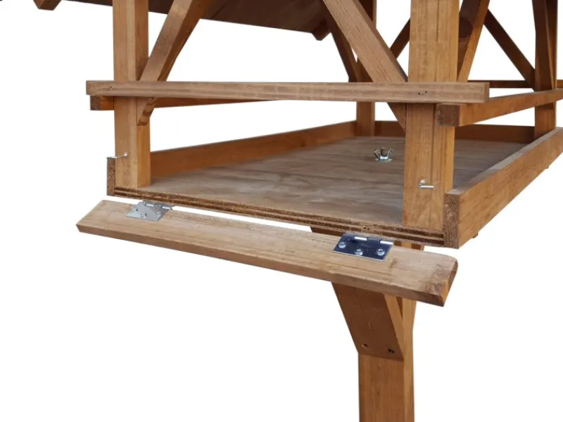 Die robuste Futterstation besteht aus wetterfest lasiertem Kiefernholz