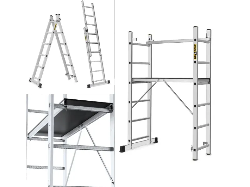 3in1-Kleingerüst: Arbeitsgerüst, Anlegeleiter und freistehende Leiter