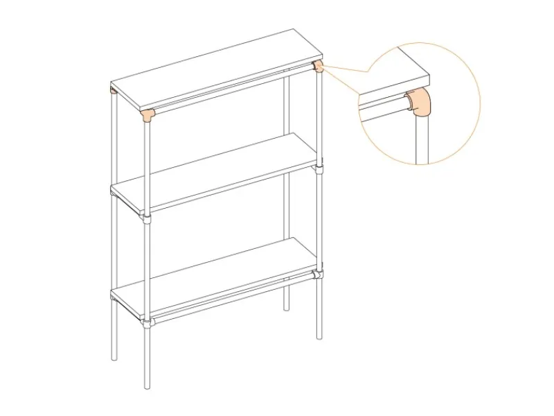 Bildet zusammen mit passenden Rohren und Verbindern das Gestell des Möbelstücks