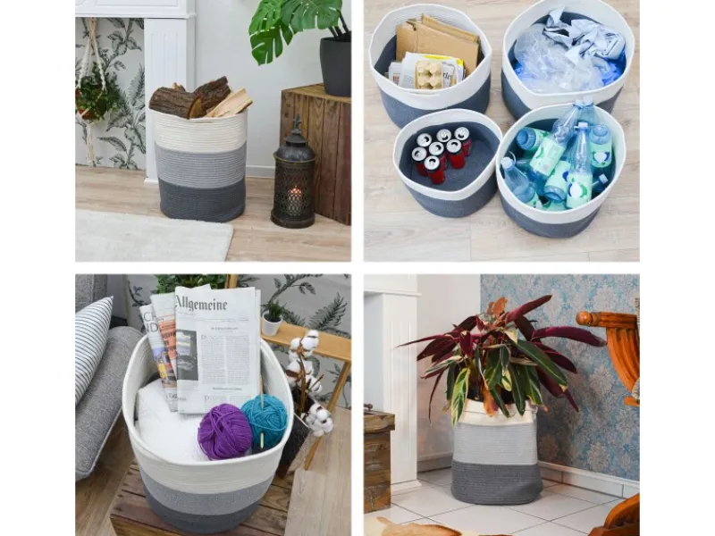 Für Decken und Kissen im Schlafzimmer, Handtücher im Bad, Wäsche im Kleiderschrank oder als XL Blumentopf: Für die passende Höhe kannst Du den Seilkorb sogar krempeln.