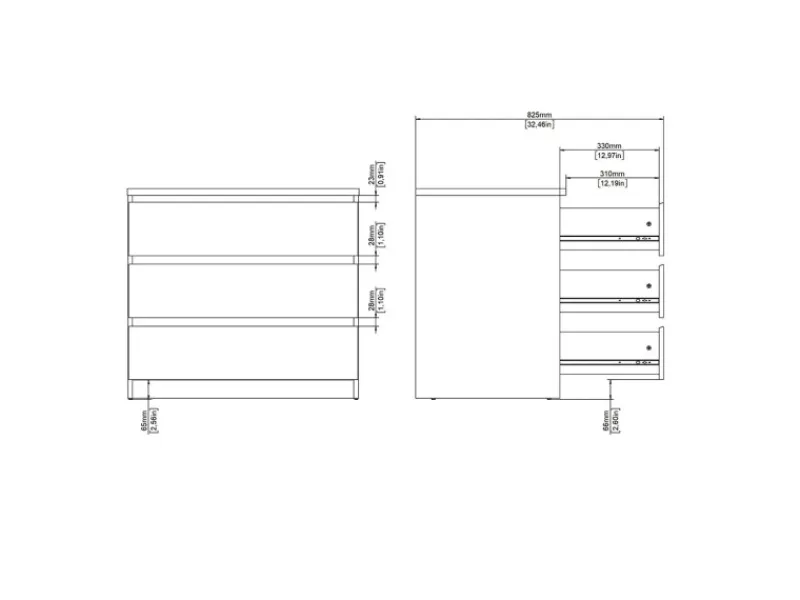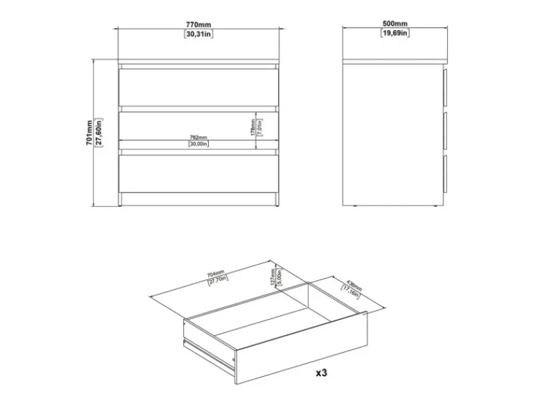 Praktische aufbewahrung – drei geräumige schubladen zum ordnen ihrer sachen.