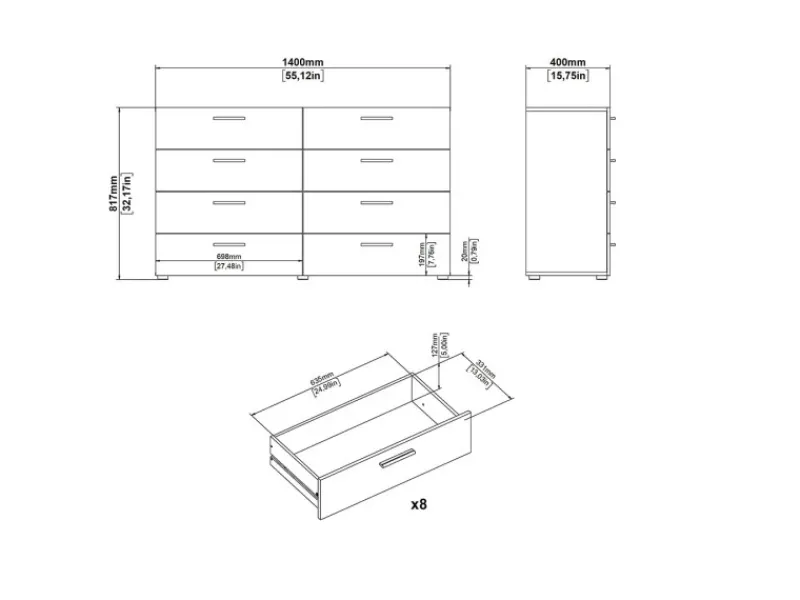 Geräumiger stauraum – acht schubladen bieten viel platz für die organisation.