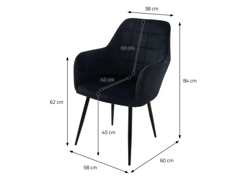 Hole dir den Designer Esszimmerstuhl mit 45 cm Sitzhöhe, Rücken- und Armlehne, Polsterung und Samtbezug und verleihe deinem Essbereich oder Arbeitsraum eine unvergleichliche Note von Eleganz. Tauche ein in die Welt des Designs und sichere dir diesen zeitlosen Klassiker für dein Zuhause!