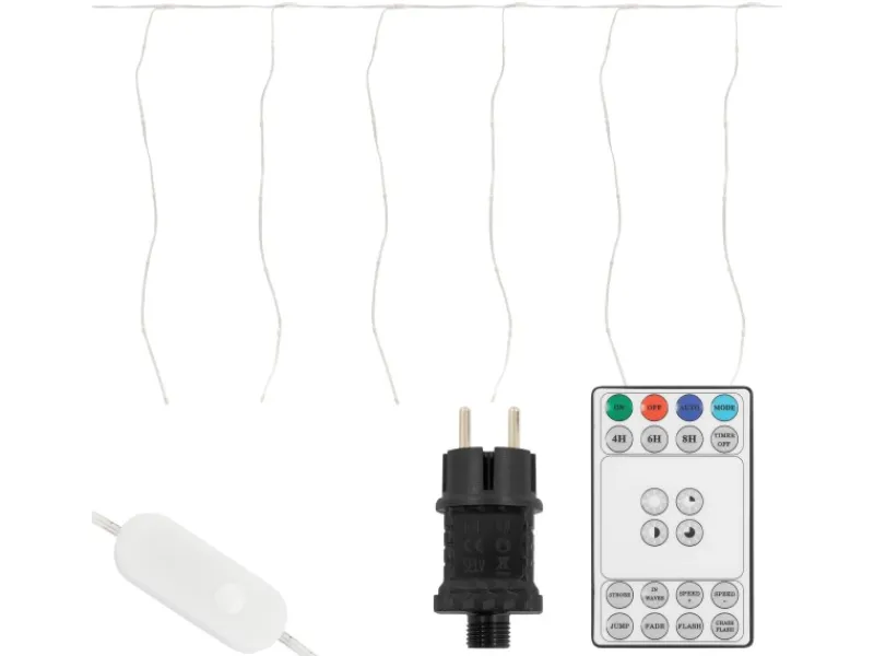 Dieser LED-Lichtervorhang sorgt mit seinem warmweißen Licht für stimmungsvolle Akzente – ob zur Weihnachtszeit, für Partys, Hochzeiten oder einfach als warme Raumdekoration. Mit insgesamt 120 LEDs verteilt auf 20 Stränge über eine Breite von 3 Metern schafft er eine elegante Lichtkulisse. Die beiliegende Fernbedienung ermöglicht nicht nur die Auswahl aus 19 verschiedenen Leuchtmodi, sondern auch die komfortable Steuerung der Timerfunktion mit 4, 6 oder 8 Stunden Laufzeit. Ideal für Fenster, Wände, Balkone oder als Hintergrundbeleuchtung im Innenbereich.