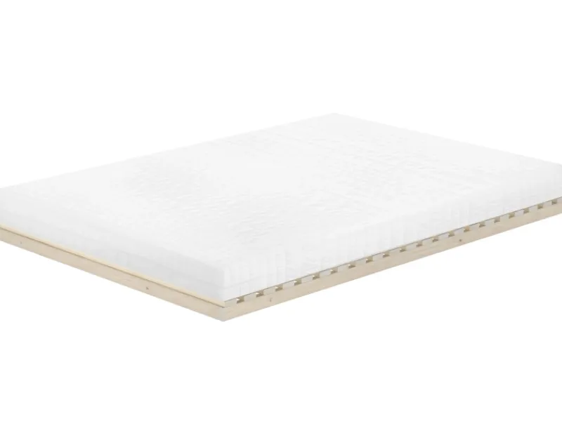 Multifunktionales Bett oder LattenrostNaturprodukt Holz… logisch!Beschreibung:Vielseitig nutzbares Bett oder Lattenrost – ganz ohne Metall!Die Leisten werden nicht verschraubt, sondern mit stabilen Holzdübeln an den Seitenteilen befestigt.So bleibt die gesamte Konstruktion metallfrei und bietet ein natürliches, angenehmes Schlafgefühl – ganz ohne störende Metallteile.Die Konstruktion kann als Lattenrost in allen Betten mit einer Liegefläche von 140 x 200 cm verwendet werden.Sie besteht aus 21 fein geschliffenen Latten aus unbehandeltem Fichtenholz – ideal für gesundes Schlafklima.Bitte beachten Sie: Bei kleineren Varianten ist das Seitenteil nicht durchgehend, sondern besteht aus zwei Teilen, die durch Holzdübel miteinander verbunden werden.Optional kann das Lattenrostbett mit passender Matratze kombiniert werden. Da die Matratze lediglich aufgelegt wird, empfehlen wir Anti-Rutschmatten (nicht im Lieferumfang enthalten) für besseren Halt.Maße:Liegefläche: 140 x 200 cmSeitenteile: ca. 50 x 25 mm20 Leisten: ca. 60 x 20 mmMittelleiste: ca. 100 x 20 mm