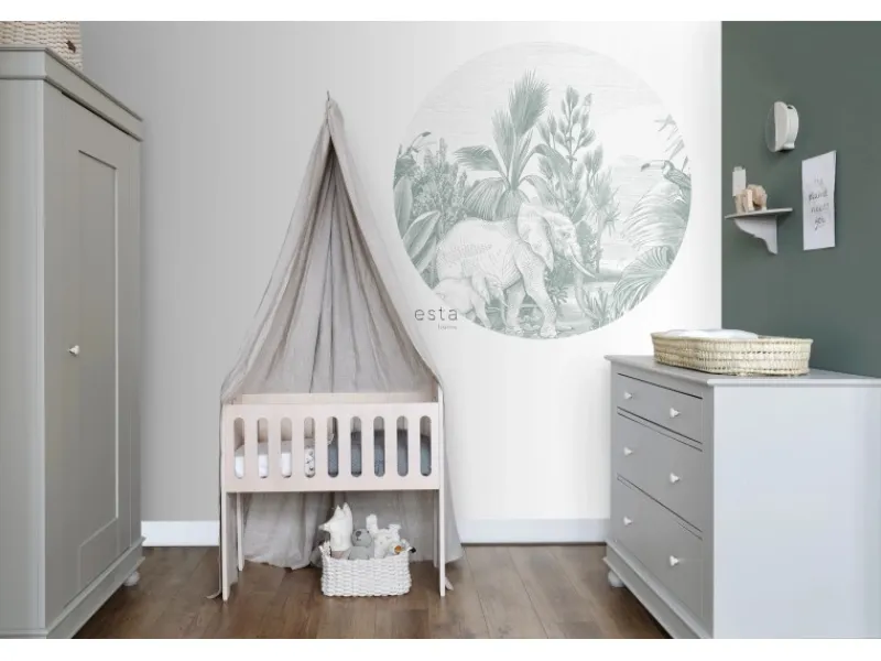 Diese selbstklebende runde Tapete ist perfekt für die Wandgestaltung eines Babyzimmers oder eines Jungenzimmers.