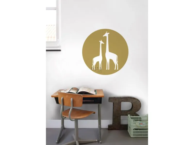 ESTAhome Selbstklebende Runde Tapete Giraffen Ockergelb und Weiß Ø 70 cm 158978