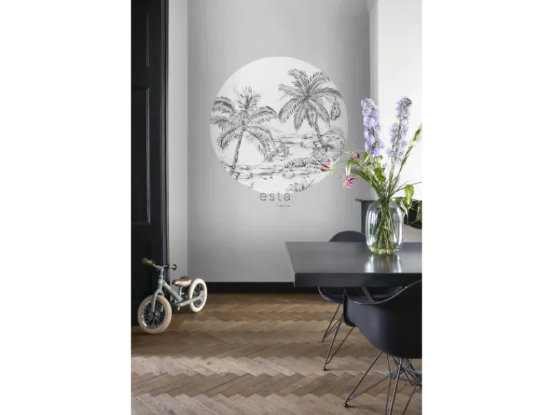 Diese selbstklebende runde Tapete von ESTAhome ist selbstklebend und kann dadurch einfach angebracht werden. Beim Anbringen wird kein Tapetenkleister benötigt.