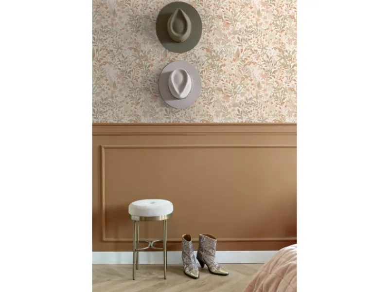 Diese schöne Tapete mit Feldblumen in Terrakotta und Graugrün verleiht jedem Wohnraum einen botanischen Look. Typisch für den botanischen Stil sind satte Grüntöne, helle und frische Farben, natürliche Materialen und vor allem richtig viel Pflanzen. Maße, Rapport und Musterversatz Die Maße dieser Tapete sind 50 x 900 cm (Breite x Länge). Der Rapport ist 50 (gerader Ansatz). Das heißt, dass das Motiv sich alle 50 cm wiederholt und das Muster der einzelnen Tapetenbahnen auf gleicher Höhe geklebt werden muss.Tapezieren Das Anbringen dieser Vliestapete ist einfach und unkompliziert: nachdem der Vlies-Kleister direkt auf die Wand aufgebracht wurde, kann die Tapete angesetzt und anschließend glattgestrichen werden. Eventuelle Überstande können mit einem Cuttermesser entfernt werden. Beim Tapezieren wird kein Tapeziertisch benötigt und die Tapete ist auch nach Jahren restlos trocken abziehbar. Für das beste Tapezierergebnis empfiehlt ESTAhome den professionellen Wallpro PRO-301 Tapetenkleister. Vorbereitungstipp: Verhindere Probleme mit der Haftung deines Tapeten, indem du vorher testest, ob deine Wandoberfläche stark saugend ist. Nimm dazu einen feuchten Schwamm und befeuchte einen kleinen Teil der Wand. Wenn der feuchte Bereich innerhalb weniger Sekunden verschwindet, ist die Wand sehr saugfähig. In diesem Fall empfehlen wir, ein Grundiermittel zu verwenden, um die Saugfähigkeit zu verringern. ESTAhome empfiehlt hierfür die WALL PRO-401 Tapetenprimer.Sofort startklar! Am einfachsten ist es, direkt auch der benötigte Tapetenkleister und ein Wallpro PRO-933 Tapezierset zu bestellen. Dieses Tapezierset enthält alle Tapezierwerkzeuge, die beim Tapezieren von Vliestapeten benötigt werden. Diese Artikel können über das Suchfenster auf der Amazon Seite schnell gefunden und bestellt werden. So wird das Tapezieren zum Kinderspiel!