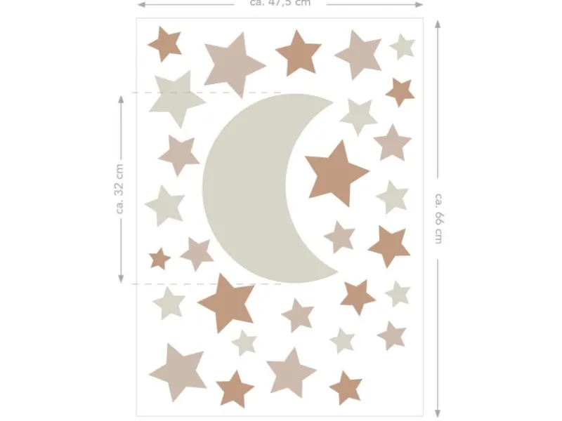 Die Maße dieses Wandtattoos sind 47,5 cm x 66 cm (Breite x Länge). Dieses Wandtattoo enthält 30 Aufkleber.